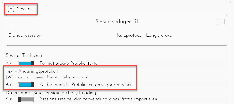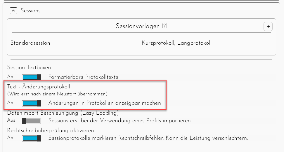 Zusätzlich gibt es noch ein paar Optionen, die unter "Session hinzufügen" nicht angezeigt werden.